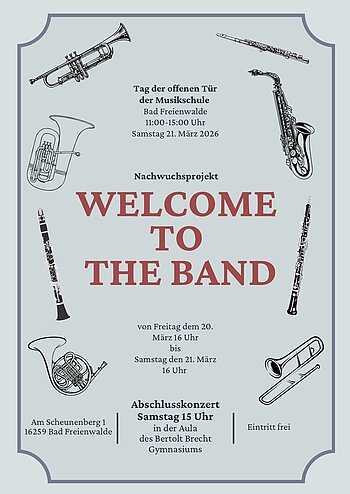Aktuelles 08. März 2026 Abschlusskonzert der Bläserklasse Neuenhagen 08. März 2026 Abschlusskonzert der Bläserklasse Neuenhagen Die Bläserklasse 6 der Insel-Grundschule Neuenhagen lädt zu ihrem Abschlusskonzert am 26. Juni 2026 ein. ansehen » 08. März 2026 Nachwuchsprojekt "Welcome to the band" 08. März 2026 Nachwuchsprojekt "Welcome to the band" Am 20./21.03.2026 findet das Nachwuchsprojekt "Welcome to the Band" statt. Gekrönt wird es von einem Abschlusskonzert um 15 Uhr in der Aula des Gymnasiums Bad Freienwalde. ansehen » 03. Dezember 2025 Adventskonzert 2025 03. Dezember 2025 Adventskonzert 2025 Das Orchester Bad Freienwalde lädt zum alljährlichen Adventskonzert am 14. Dezember in die St. Nikolai Kirche Bad Freienwalde ein. ansehen » 15. Juni 2025 Mitternachtskonzert 2025 15. Juni 2025 Mitternachtskonzert 2025 Das Warten hat sich gelohnt! Nach der Pause im letzten Sommer lädt das Orchester Bad Freienwalde wieder zum Mitternachtskonzert am 12. Juli 2025 ein. ansehen » 01. Juni 2025 | Susanne Mette; Foto: Jana Feige Orchester Bad Freienwalde begeistert beim Bundesmusikfest 01. Juni 2025 | Susanne Mette; Foto: Jana Feige Orchester Bad Freienwalde begeistert beim Bundesmusikfest Was für ein Erfolg! Das Orchester Bad Freienwalde erhält das Prädikat "hervorragend" beim Wertungsspiel des Bundesmusikfests und bereitet das Mitternachtskonzert vor. ansehen » 21. Mai 2025 Musik baut Brücken… Freienwalder Musiker on Tour 21. Mai 2025 Musik baut Brücken… Freienwalder Musiker on Tour Wer an den letzten Wochenenden seine Schritte über den Bad Freienwalder Scheunenberg lenkte, wird wahrgenommen haben, dass in der Aula der Musikschule intensiv geprobt wird.Das Orchester Bad Freienwalde bereitet nämlich gleich 2 Höhepunkte vor. ansehen » 19. November 2024 Adventskonzert 2024 19. November 2024 Adventskonzert 2024 Fröhliche Weihnacht überall! Das Orchester lädt zum Adventskonzert 2024 in die St. Nikolai Kirche Bad Freienwalde ein. ansehen » 18. Mai 2024 Benefizkonzert in Kruge 18. Mai 2024 Benefizkonzert in Kruge Das Jugendorchester spielte sein erstes großes Konzert in diesem Jahr um das Kulturhaus Kruge zu unterstützen. ansehen » 16. März 2024 Welcome to the Band 16. März 2024 Welcome to the Band Die Projektarbeit in diesem Jahr startete mit „Welcome to the Band“ zur Förderung und Begeisterung junger Nachwuchsmusikerinnen und Nachwuchsmusiker für das Mitspielen in einem großen Orchester. ansehen » 10. März 2024 Aktuelle Termine Neu: Für aktuelle Termine aller Ensembles hier klicken ansehen » 10. März 2024 Jahreshauptversammlung des LBB e.V. 10. März 2024 Jahreshauptversammlung des LBB e.V. Die Jahreshauptversammlung 2024 des Landesblasmusikverbandes Brandenburg fand in unseren Räumlichkeiten statt. ansehen » 21. Dezember 2023 Adventskonzert des Nachwuchses 21. Dezember 2023 Adventskonzert des Nachwuchses Das Nachwuchsorchester und die Bläserklassen der Umgebung luden zu einem Adventskonzert ein. ansehen » 22. November 2023 Adventskonzert 2023 22. November 2023 Adventskonzert 2023 Das Orchester lädt zum alljährlichen Adventskonzert am 3. Advent in die St. Nikolai Kirche Bad Freienwalde ein. ansehen » 01. Oktober 2023 Herzliche Einladung zum Jubiläumsempfang 01. Oktober 2023 Herzliche Einladung zum Jubiläumsempfang Wir feiern gleich zwei Jubiläen und laden zu diesem Anlass zu einem Empfang am 07.10.2023 in die Aula der Musikschule Bad Freienwalde ein. Wir freuen uns! ansehen » 24. September 2023 Sommertheater mit Spendenübergabe 24. September 2023 Sommertheater mit Spendenübergabe Am 30. September präsentiert das Theater 89 am Schloss Freienwalde ein irisches Volksstück. Zuvor wird die Michael-Linckersdorff Stiftung dem Jugendorchester eine Spende überreichen. ansehen » 1234567 »